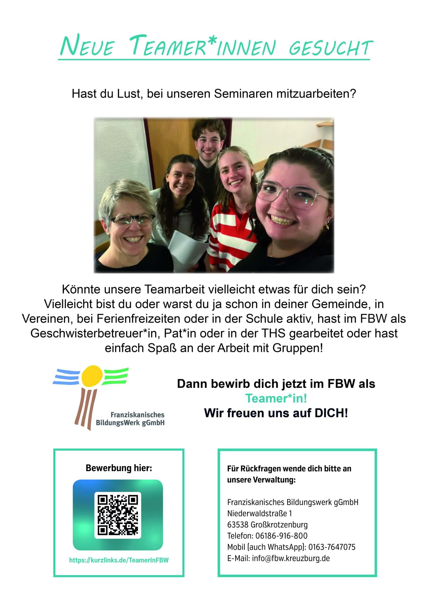 jedes Jahr suchen wir neue Teamer*innen für die Seminararbeit im FBW.